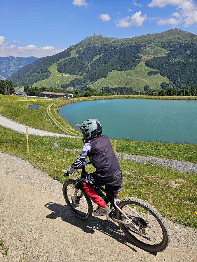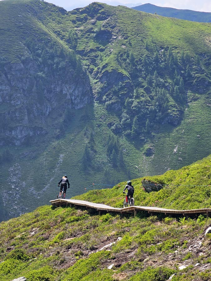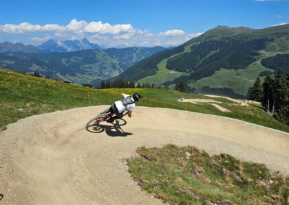 Der 6,5 Kilometer lange Trail startet im oberen Abschnitt des Zwölferkogels – einem der beeindruckendsten Aussichtspunkte der Region – und führt mit zahlreichen flowigen Anliegern, kleinen Sprüngen und perfekt angelegten Kurven talwärts. Während der Abfahrt genießen Biker:innen einen spektakulären Panoramablick über das Glemmtal und die Kitzbüheler Alpen.