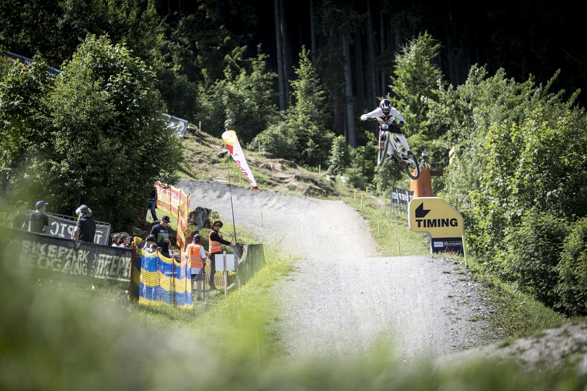 Vali Höll sicherte sich bereits in der ersten Qualifikationsrunde mit Laufbestzeit souverän das Ticket für das morgige Downhill-Finale. Eine Leistung, die umso höher einzuschätzen ist, da die Lokalmatadorin in den vergangenen Tagen zu kämpfen hatte: „Ich bin nicht ganz bei mir. Ich hatte immer wieder mit Migration zu kämpfen und zu wenig Schlaf. Deshalb fühle ich mich heute nicht bei 100 Prozent. Jetzt geht es zurück ins dunkle Zimmer, um möglichst viel Energie für morgen zu sammeln“, so Höll nach ihrem Lauf. Der Leogang-Champion von 2023 Andreas Kolb musste lange zittern. Als 24. verpasste er die Qualifikation nach Lauf eins klar. Der Steirer benötige den zweiten Durchgang, um sich mit Laufbestzeit doch noch in letzter Sekunde für das Finale zu qualifizieren: „In Q1 wäre ich in den letzten zwei Kurven beinahe gestürzt und habe sicher zwei Sekunden verloren. Einfach zu viele Fehler. Es hat mich absolut gestresst, ich wollte die Qualifikation vor Familie und Freuden so sehr, dass ich jetzt mega erleichtert bin“, kommentierte Kolb seine Qualifikation.