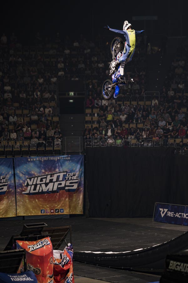 Am Samstag, 12. April startete in München die Jubiläumssaison von NIGHT of the JUMPs mit der spektakulärsten Freestyle-MX-Sportserie der Welt. Seit 25 Jahren heißt es Action und Adrenalin mit überwältigendem Motorsport, einer beeindruckenden Pyro-Show und Extremsport auf höchstem Niveau. Dies bewiesen die jeweils acht Freestyle-Motocross-Sportler sowie MTB/BMX/Scooter-Athleten beim Auftakt-Grand Prix der World Tour Championship in der Olympiahalle München auf eindrucksvolle Weise. Aufgrund des großartigen Erfolgs und der hohen Nachfrage kehrt NIGHT of the JUMPs am 24. April in die Münchner Olympiahalle zurück.