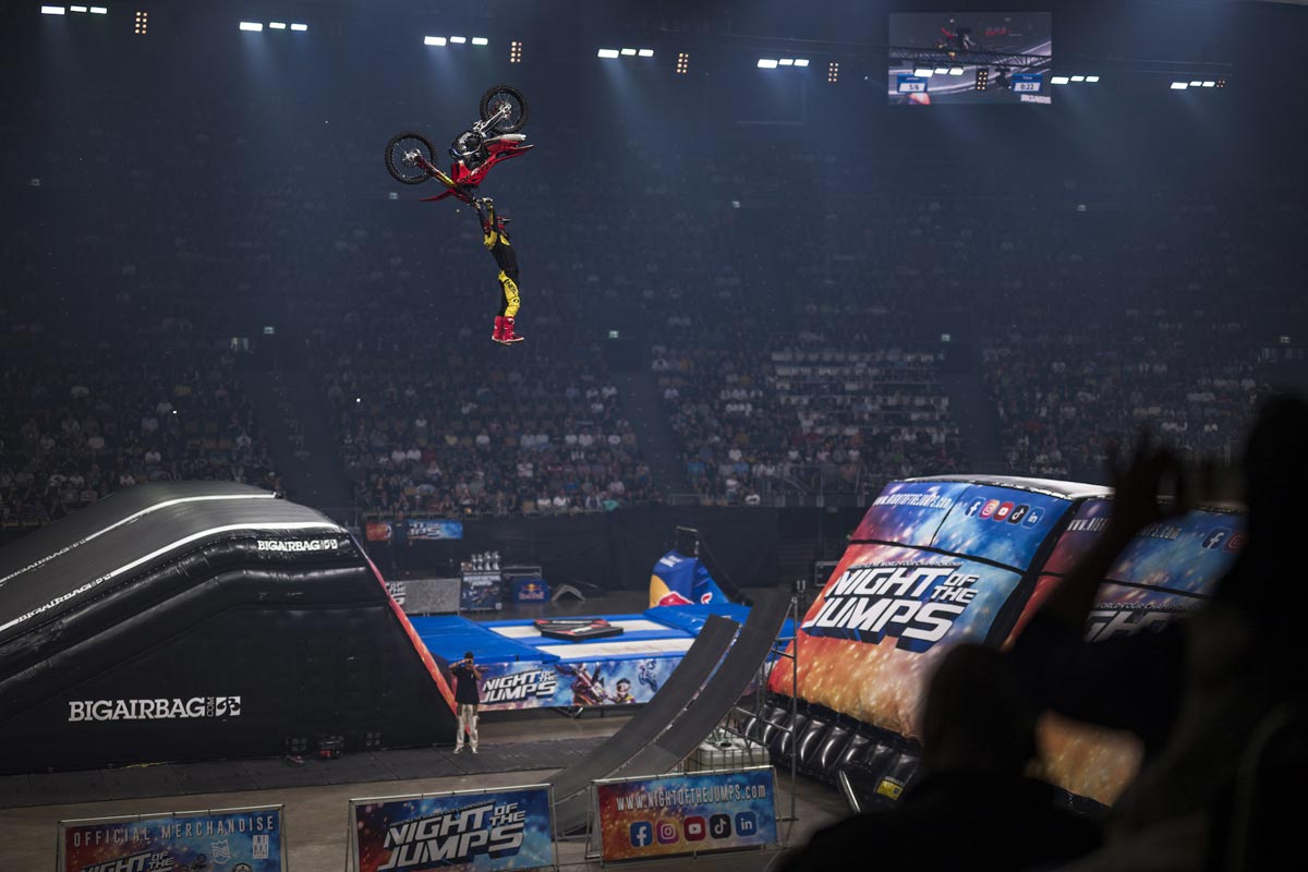 Damit setzte er Luc Ackermann unter Druck. Doch der FMX-Profi wurde in seinem zweiten „Wohnzimmer“ zum Freestyle-Destroyer. Er absolvierte einen perfekten Run mit Tsunami Flip, 360, Holygrab to Rock Solid, Seatgrab Indy Flip, Clicker to Ruler Flip und No Hand Frontflip. Als er mitten im Run dann einen echten Frontflip über die Next Gen Rampe präsentierte, rasteten die Zuschauer völlig aus. Mit dieser Trickpremiere schrieb Luc Ackermann NIGHT of the JUMPs-Geschichte. Nachdem er seinen Run mit einem Double Backflip abschloss, skandierten die begeisterten Besucher mit nicht enden wollendem Applaus. Auch die Judges honorierten dies mit 283 Punkten, was Luc Ackermann den Sieg sicherte und ihn im World Ranking auf Platz 1 brachte.