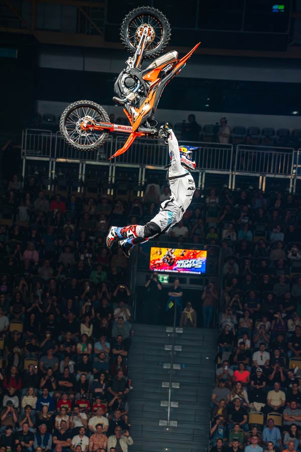 Im Finale fuhr Davide Rossi als Erster vor. Acht Tricks plus Double Up musste er präsentieren. Der Italiener zeigte einen sauberen Run mit einer ausgewogenen Mischung aus Backflips und Frontflips, darunter Tsunami Flip, 1‑Hand Nac und Suicide Frontflip. Dafür erhielt er 75,00 Punkte und nahm zunächst den Hotseat ein. Matej Cesak wollte ihn mit einem massiven No‑Hand Frontflip und Nac Frontflip verdrängen, landete mit 72,5 Punkten jedoch hinter Rossi. Marc Pinyol, der in Berlin den Sieg knapp verpasst hatte, wollte in München triumphieren und zeigte unter anderem Indy to Indy Frontflip, Surfer Tsunami Flip, Superman Frontflip, Cordova Flip, Triple Indy Flip und Cliffhanger Flip. Beim Versuch, mit dem Lazyboy Frontflip eine Premiere zu zeigen, stürzte er, stieg jedoch wieder aufs Motorrad und beendete seinen Run mit einer California Roll im Double Up. Trotz Fehlers reichten 76,00 Punkte für die Führung — bis Luc Ackermann seinen Finalrun fuhr. Er begann mit dem Double Backflip, gefolgt von Tsunami Flip, No‑Hand Frontflip, 360, Seatgrab Indy Flip, Holygrab, Clicker to Ruler Flip, Flatliner und einem weiteren Double Backflip 1‑Hand und sicherte sich mit 86,5 Punkten den Tagessieg in München. Das Comeback des FMX‑„Terminators“ war damit perfekt.